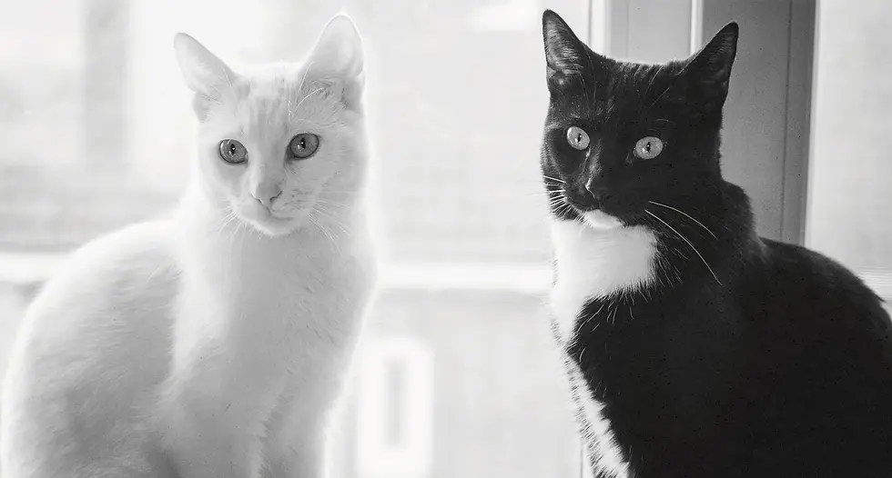 Black hair contains about 99 percent eumelanin, brown and blond hair 95 percent eumelanin, and red hair 67 percent eumelanin. White cats who have dark-colored eyes or dark spots on their paws and/or nose have less eumelanin and albino cats have none.